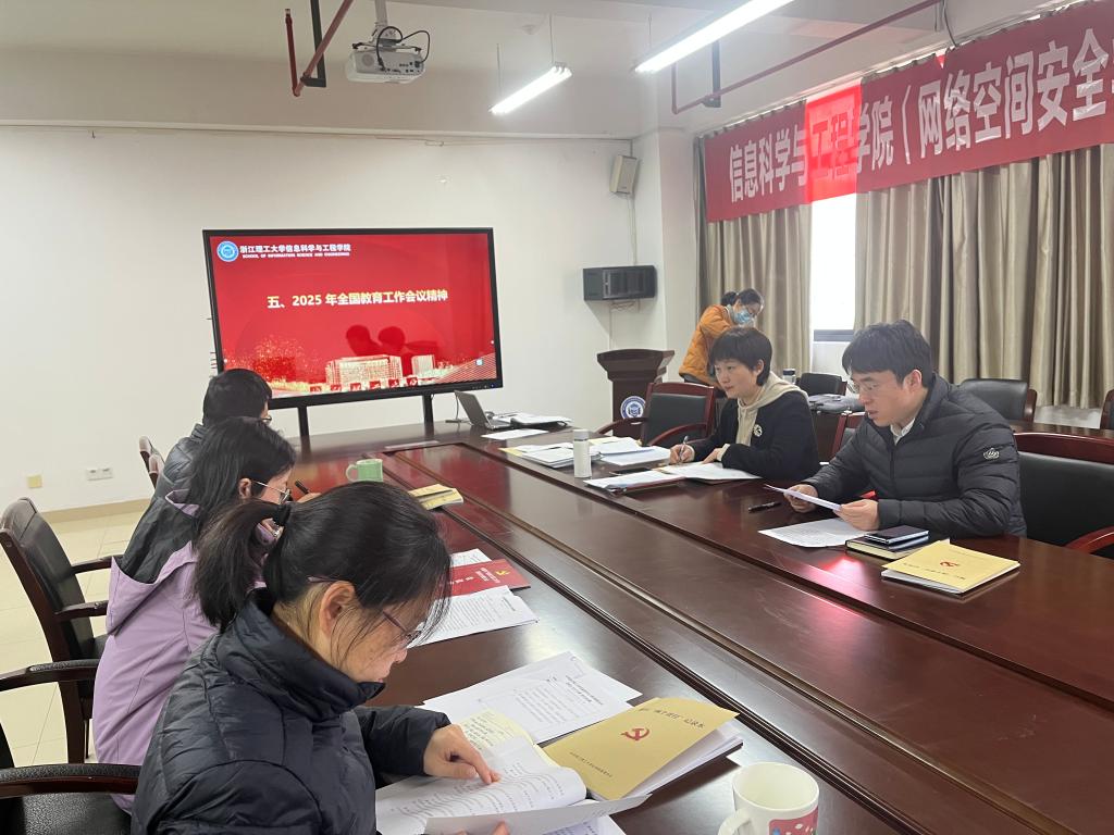 会上,苏丽辉领学习近平总书记在全国政协新年茶话会上的重要讲话和二〇二五年新年贺词精神、第二十八次全国高校党的建设工作会议精神。院长沈剑领学2025年全国教育工作会议精神,党委副书记许丽芬领学中纪委二十届四次会议精神、省纪委十五届四次会议精神。