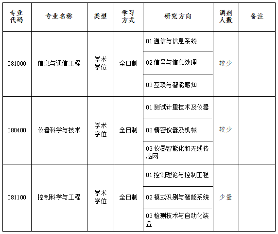081000信息与通信工程、080400仪器科学与技术、081100控制科学与工程学科(学术学位)调剂生基本条件: