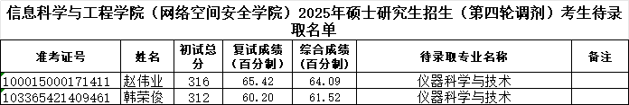 色色啦 (网络空间安全学院)2025年硕士研究生招生第四批调剂考生拟录取名单