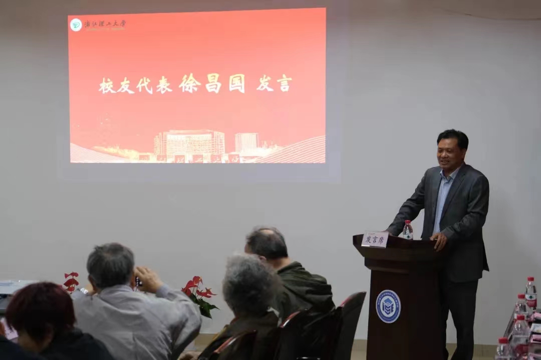 新任理事会会长、83级校友、浙江达峰科技有限公司董事长徐昌国讲话,他饱含深情地回忆了自己的大学生活和师生情谊,表达了对母校的感激之情以及身为浙理人的自豪感。他希望校友会广大校友一道积极发挥桥梁纽带作用,成为校友与母校沟通交流的平台,加强校企合作,共同培养、提升母校学生的动手实践能力,争取为学校发展和国家建设作出更大的贡献。