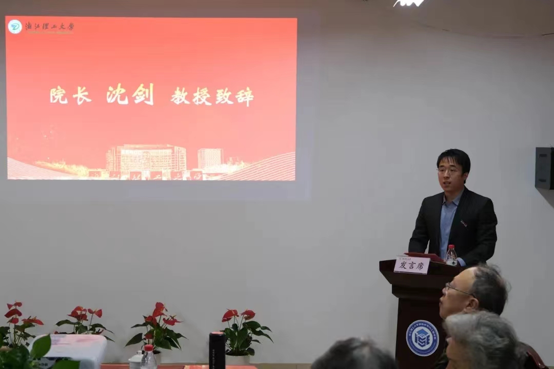 杭州校友会成立仪式在庄严的国歌声中拉开帷幕。学院院长沈剑致辞,他首先对各位校友的到来表示热烈地欢迎和诚挚感谢,介绍了学校总体发展情况及近年来取得的巨大成就,分享了新学院的成立背景、专业设置、师资配备及成立以来取得的优异成绩。他表示,学院将牢牢把握“亲”“诚”“惠”“同”四个原则和特点,不断完善全员重视和参与的校友工作体系,建好校友会组织、打造好品牌活动和发展平台,努力打造互联互享、共创共赢的校友工作格局。