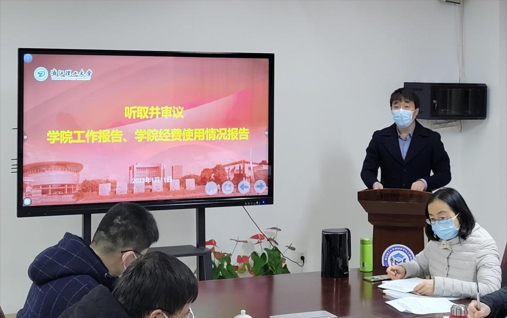 院长沈剑向大会作题为《乘风破浪勠力同心全面开启学院建设新篇章》的工作报告。他对学院建院以来的工作进行了回顾,指出学院自2022年6月份成立以来,始终坚持以习近平新时代中国特色社会主义思想为指导,在学校党政的正确领导下,统筹推进疫情防控工作和各项事业发展,始终坚持立德树人根本任务,党政齐抓共管、攻坚克难,全体教职工凝心聚力、锐意进取,不断开创新局面,各项工作有序推进、稳步发展。党建引领,凝聚学院发展合力;认真谋划,实现办学提升发展;引育人才,强化师资队伍建设;精心组织,提升科研质量发展;攻坚克难,引领学院更快发展。