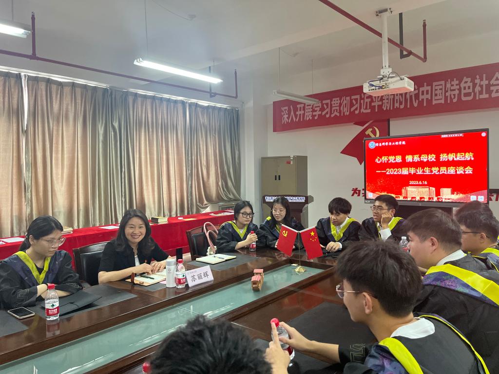 举办“书记院长面对面”暨2023届毕业生党员座谈会活动,党委书记苏丽辉出席了座谈会,2023届毕业生党员代表参加座谈。座谈会由学院组织员顾林彬主持。