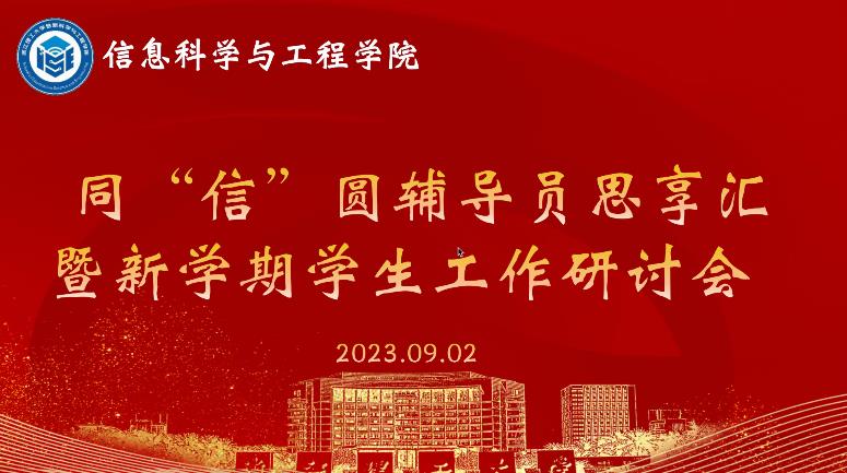 召开了同“信”圆辅导员思享汇暨新学期学生工作研讨会,全体专职辅导员参加会议,会议由学院党委副书记许丽芬主持。