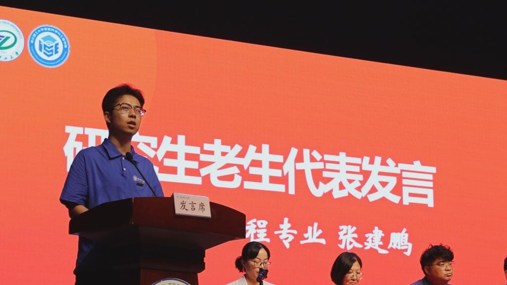 22级控制工程专业研究生张建鹏、23级电气类专业新生李度分别代表在校生和新生发言。张建鹏结合自己在学校的学习、科研历程,同新生们共勉,希望学弟学妹们都可以找到属于自己的青春之路,发扬“博学敦行、厚德致远”的理工精神,坚持初心、以梦为马,不负青春、不负韶华!李度表示现在是十二年奋斗的终点,也是崭新的起点,面对未来,将更加严格的要求自己。青年就该于波涛上踏浪而行,于江河下逆水行舟,于狂风中扶摇而上,为青春之花渲染奋斗的底色。