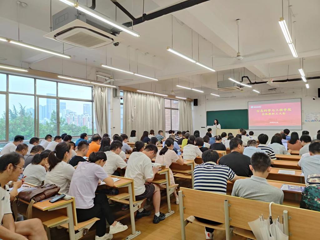 副院长赵新龙就教学和学科竞赛工作作出部署,并从日常教学管理、一流专业建设、亚运会期间的本科教学工作、实验室安全等四方面对新学期工作作出安排。