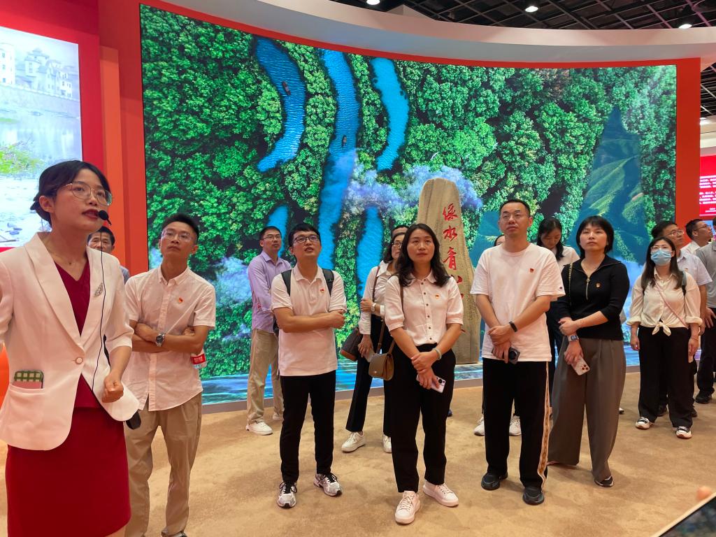 大家边听讲解边驻足观看、讨论与交流,值得铭记的历史瞬间、触及心底的生动图景以及丰硕厚重的精彩答卷,结合沉浸式影像空间、大型投影、互动翻书等多媒体、数字化手段,让大家在“循迹溯源”中现场感悟“八八战略”历久弥新的真理力量和实践伟力。