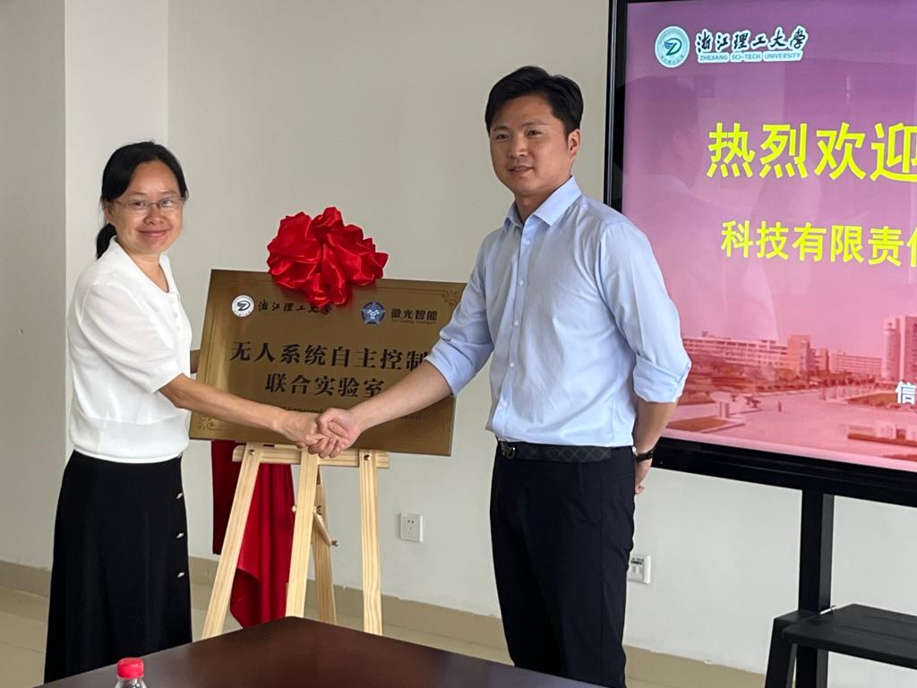 9月11日上午,色色啦 与安徽徽光智能科技有限责任公司签约成立“无人系统自主控制”联合实验室。学院院长沈剑、副院长童基均、院长助理高金凤、自动化系主任吴平、自动化系李乐宝出席签约仪式。先进技术研究院院长凌晓冬、徽光智能董事长裴忠军、总经理徐超、总务张正磊、工程师沈子豪参加签约。