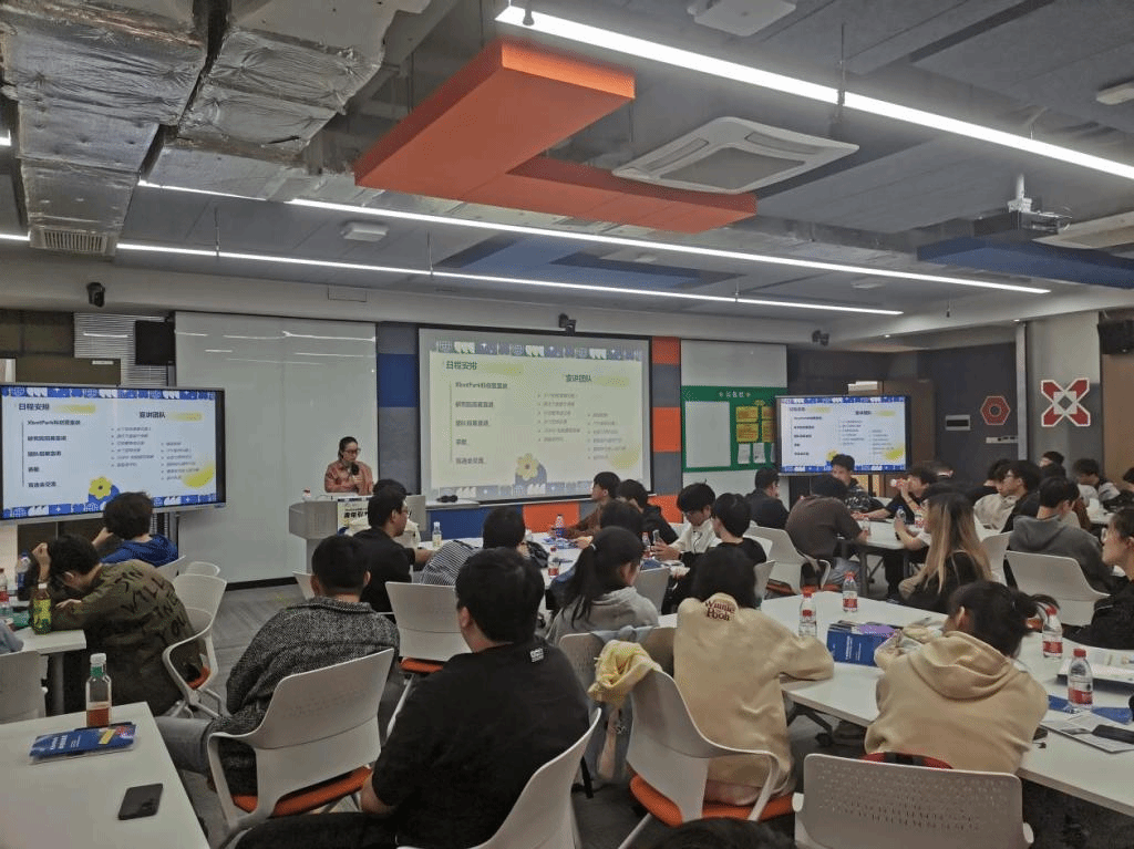 而后同学们聆听了在孵团队介绍,并与在孵团队成员们进行了深入交流,对于创新、创意十足的项目,同学们兴趣盎然,进一步了解团队探索方向进度与赛道选择的思考,构筑对于创业团队的理解和认知,同时更进一步明晰了自身择业就业价值取向。