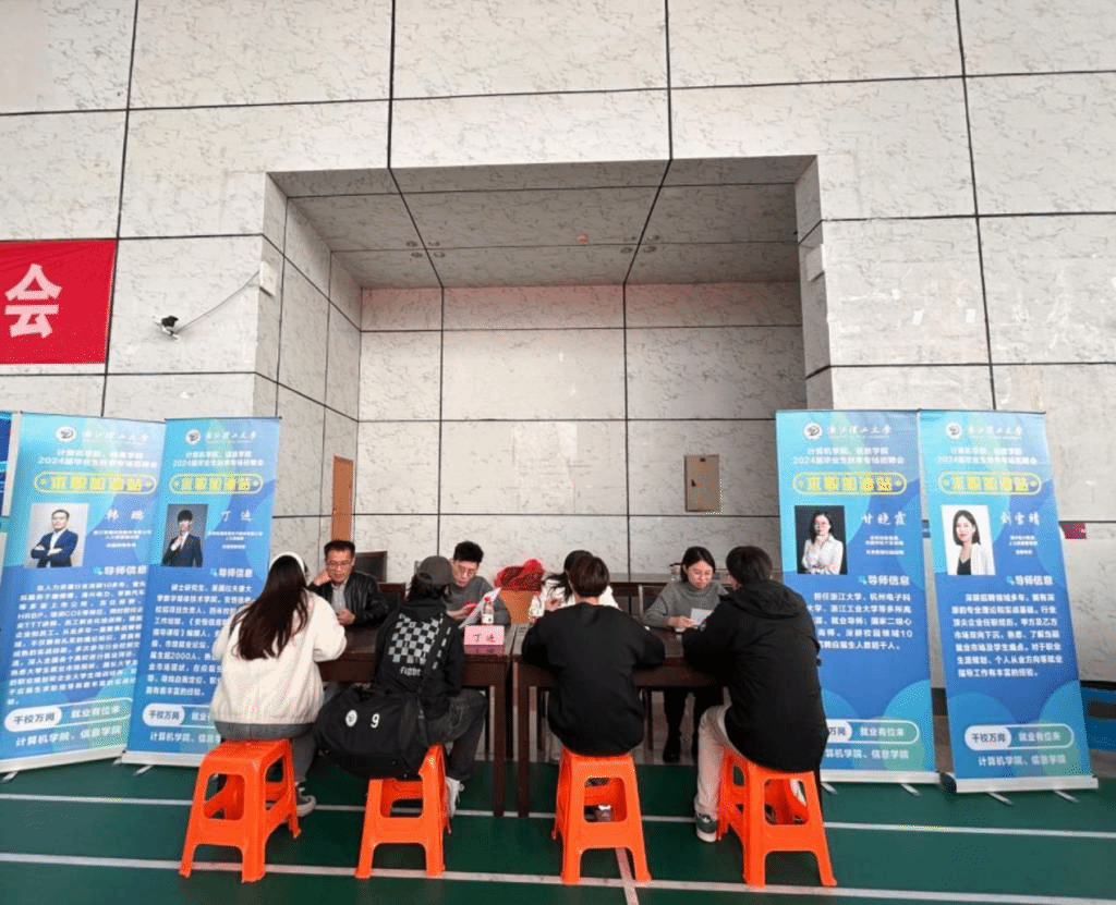 招聘会上,特别开设了求职加油站专区,邀请了浙江吉利控股集团有限公司华东大区经理甘晓霞,杭州海兴电力科技股份有限公司人力资源管理部招聘专家刘雪晴,浙江领跑科技股份有限公司人力资源总部校园招聘经理韩鹏,杭州安恒信息技术股份有限公司人力资源部校园招聘经理丁迪,结合学科专业特色、毕业生意向等情况,为学生提供暖心生涯规划、简历优化指导。现场学生排队咨询,反响良好。