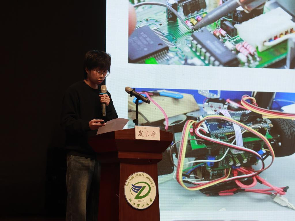 今年在本科生电子设计竞赛中获得国家一等奖的团队成员袁熠阳向学弟学妹们讲述了他的电赛故事,对电赛的备赛过程进行了详细的介绍,鼓励同学们积极加入其中。