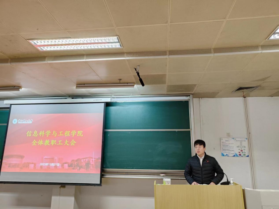 会议第二阶段,学院各分管领导就科研及研究生管理、学科及专业建设、课程建设、实验室安全、招生及就业等工作情况进行了通报,并对下一阶段工作进行安排部署。纪委书记许丽芬特别对元旦春节期间党风廉政等有关注意事项进行了强调。