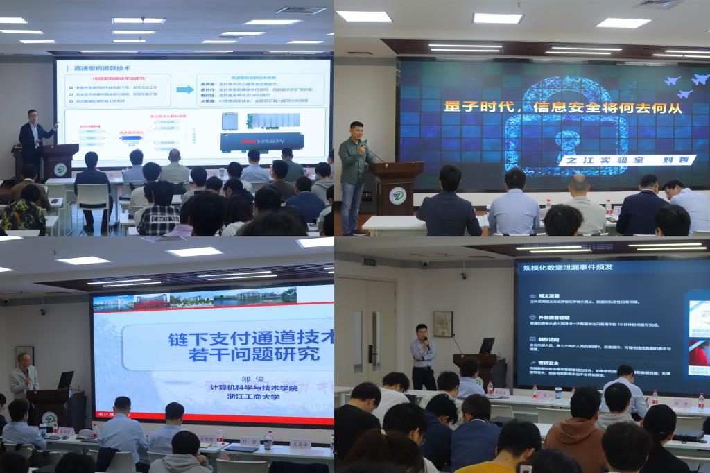 活动邀请了杭州海康威视数字技术股份有限公司王滨、之江实验室刘哲、浙江工商大学邵俊、新华三集团李国宝、北京信安世纪科技股份有限公司王存余等密码领域知名专家做了精彩的报告。报告围绕商用密码及其应用、后量子密码、区块链等前沿领域做了深入的探讨。