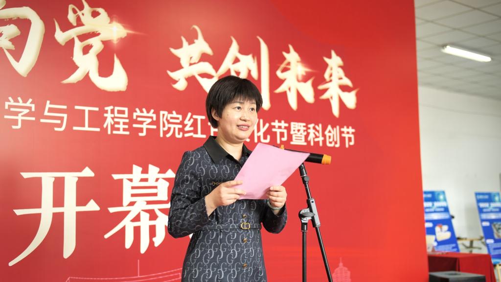 学院党委书记苏丽辉致辞。她代表学院对首届红色文化节暨第二届科创节的举行表示祝贺,回顾了学院成立以来在党建工作、科研创新和人才培养上取得的成效,号召学院师生以国家的发展为己任,继承和发扬老一辈科学家艰苦奋斗、科学报国的精神,积极强化科研实践锻炼,不断增强改革创新的能力和本领,为科技赋能强国建设贡献力量!