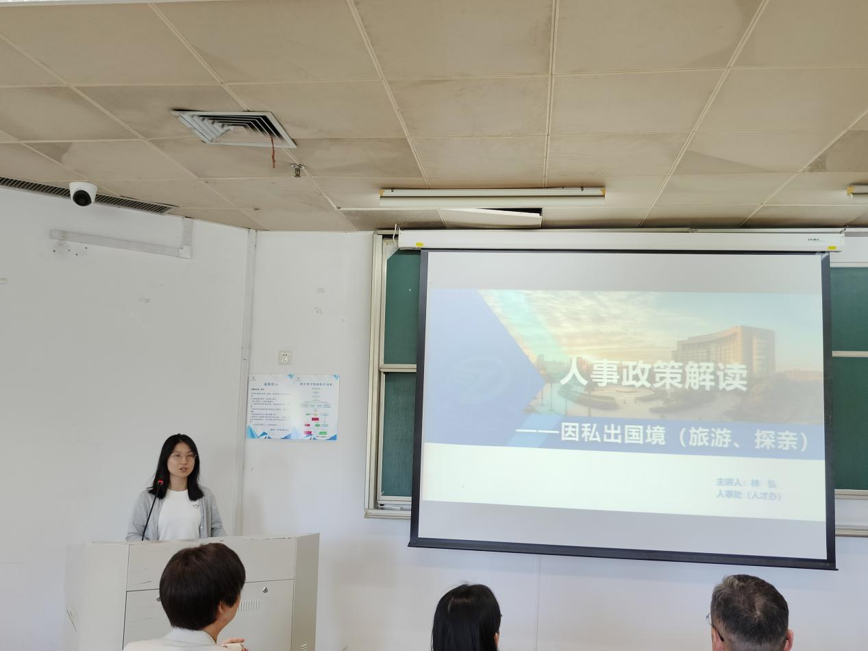 学院邀请了校人事处林弘做出国(境)政策解读。林弘从办理出国(境)的规范流程和注意事项等做了详细介绍。