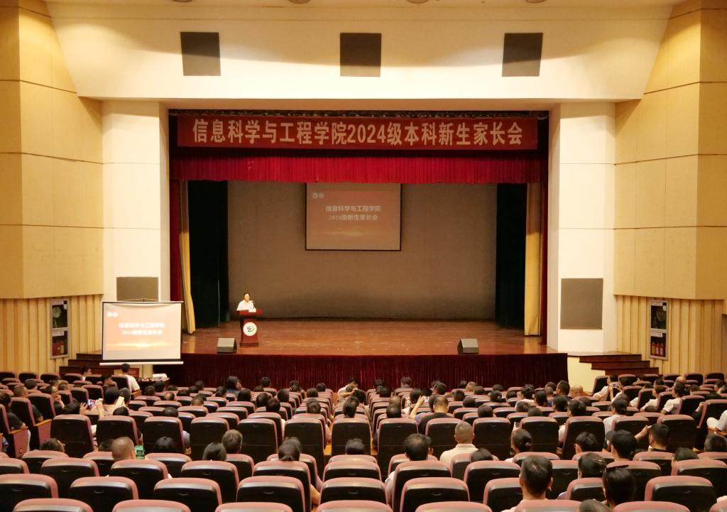 2024级本科生新生家长会在学生活动中心小剧场举行。学院院长沈剑、副院长赵新龙、各系主任、教师代表出席会议。本科新生辅导员及两百余名新生家长参加会议,会议由学院党委副书记许丽芬主持。