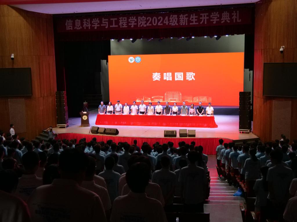 开学典礼在庄严的国歌声中拉开序幕。苏丽辉讲话,她代表学院向2024级新生表示欢迎和祝贺。希望同学们能够传承弘扬信息人的优良品格,勤于学习、勇于探索、敢于创新,甘坐冷板凳,锤炼真本领,在攻克发展新质生产力的堵点卡点上迎难而上、挺身而出,以特有的激情和活力勇立时代潮头,留下闪光的青春足迹。