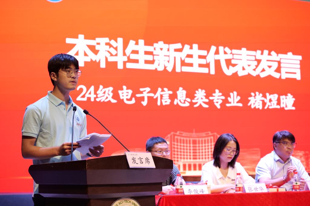 22级信息与通信工程专业研究生王嘉辉、24级电子信息类专业新生褚煜曈分别代表在校生和新生发言。王嘉辉结合自己读研以来的学习科研经历,激励学弟学妹们,扎实专业基础,勇于科研创新,在浙理遇见更好的自己,活出最精彩的人生!褚煜瞳同学表示大学生活是自由与自律的完美结合。面对未来,每一位浙理信息人都将崇尚科学、勇于探索、报国兴学、自强不息,成为这个时代下最勇敢的追梦者,实现自己的人生价值,创造出更加美好的未来。