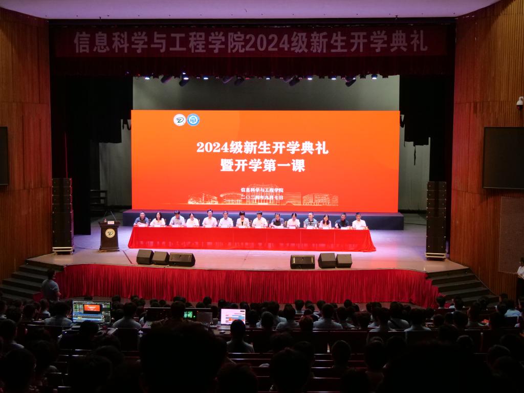在国际会展中心大剧院举行2024级新生开学典礼暨开学第一课。学院党委书记苏丽辉,院长沈剑,浙江大学研究员、博士生导师,2013届通信工程专业校周成伟,副院长童基均,副院长赵新龙,各系主任,学工办全体辅导员以及新生班主任出席会议。2024级全体本研新生参加活动。开学典礼由学院党委副书记许丽芬主持。