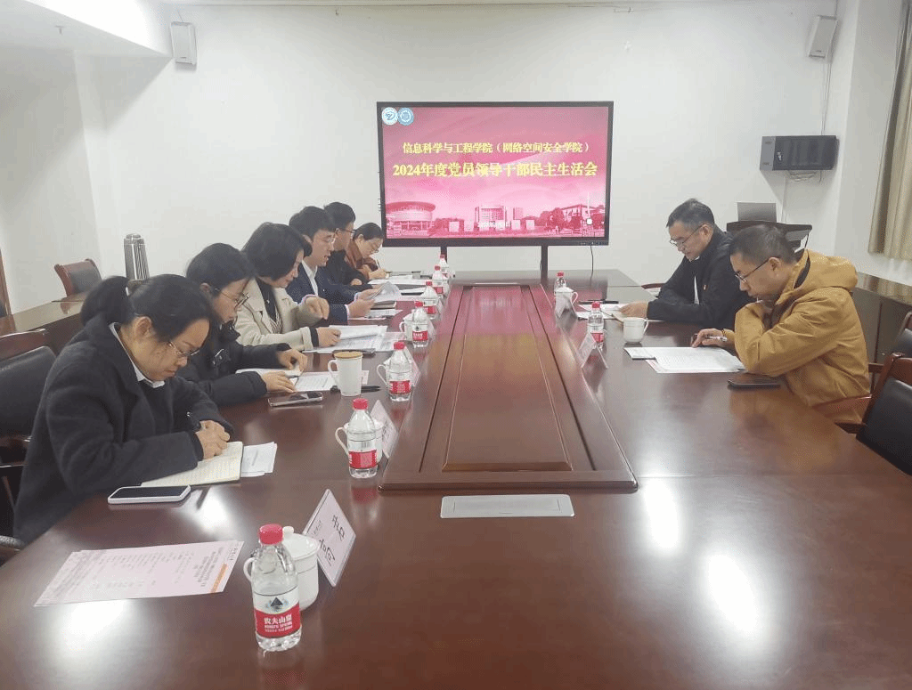 3月3日上午,信息科学与工程学院(网络空间安全学院)党委领导班子召开2024年度党风廉政建设情况分析会和民主生活会。校党委委员、副校长姚菊明,校党委组织部(党委统战部)副部长沈益到会指导。学院党委领导班子成员参加会议。校第四次党代会代表,学院综合办主任阮晶晶、组织员高君列席会议。会议由学院党委书记苏丽辉主持。