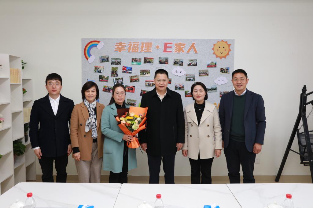 慰问高层次人才代表严利平教授。校工会、妇联常务副主席龚素瓅,校人事处处长杨晓刚陪同走访,学院高层次人才代表严利平,学院党委书记苏丽辉,院长沈剑参加慰问活动。