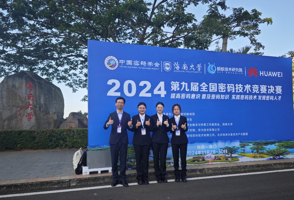 11月28-30日,学院教师王晨博士带队参加第九届全国密码技术竞赛决赛,获得全国二等奖。全国密码技术竞赛以“提高密码意识、普及密码知识、实践密码技术、发现密码人才”为主题,是目前国内级别最高、影响力最大的密码技术赛事。大赛致力于促进密码学研究和交流,强化高校学生创新意识和实践能力,助力密码学人才的成长和进步,推动产学研用深度融合。