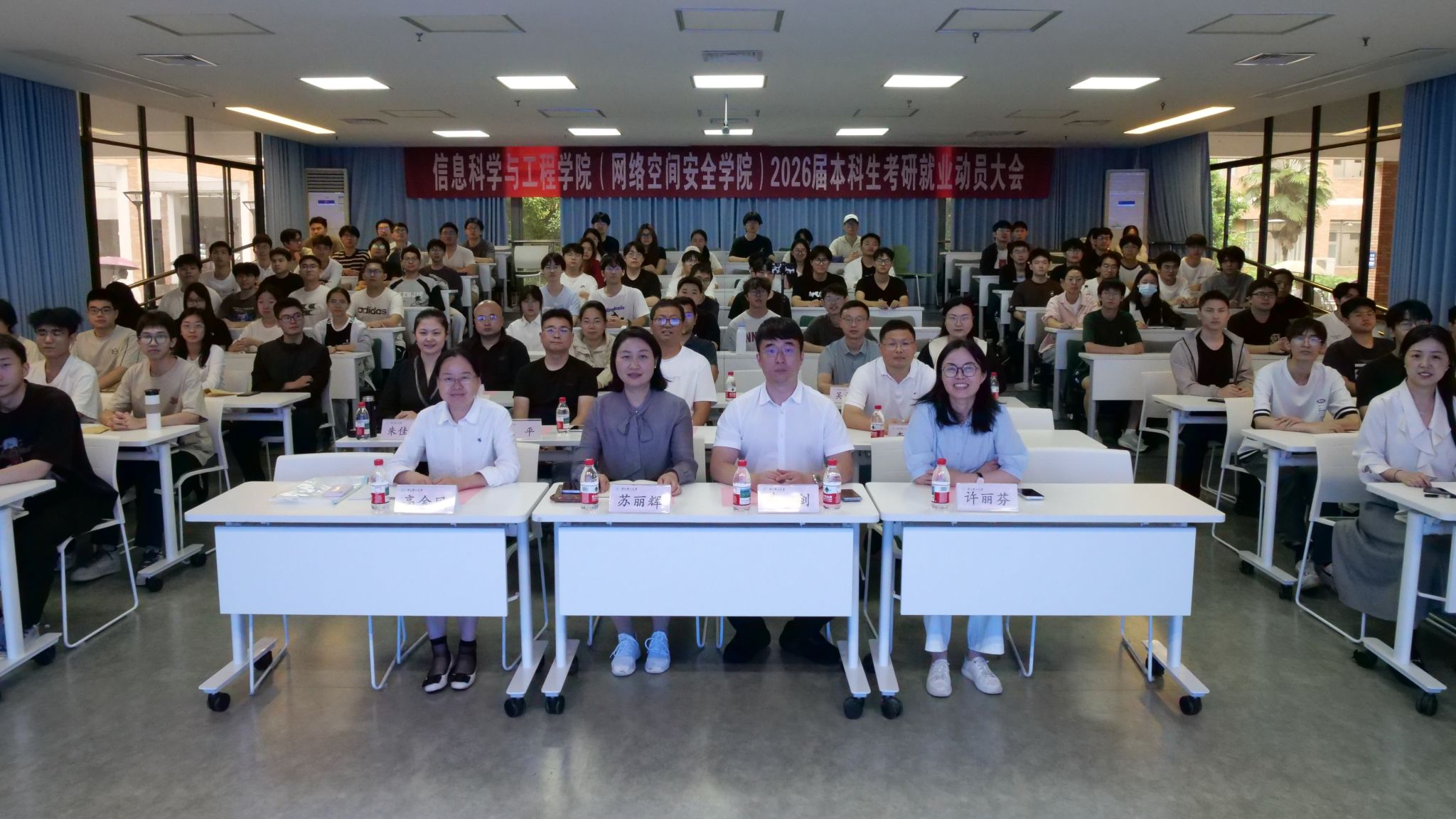 6月11日,学院举办2026届考研就业动员大会。学院党委书记苏丽辉、院长沈剑、党委副书记许丽芬、副院长高金凤,学院各系主任,考研班导师、班主任、2022级行政班主任、硕士学位点教师代表、辅导员和2026届学生参加。