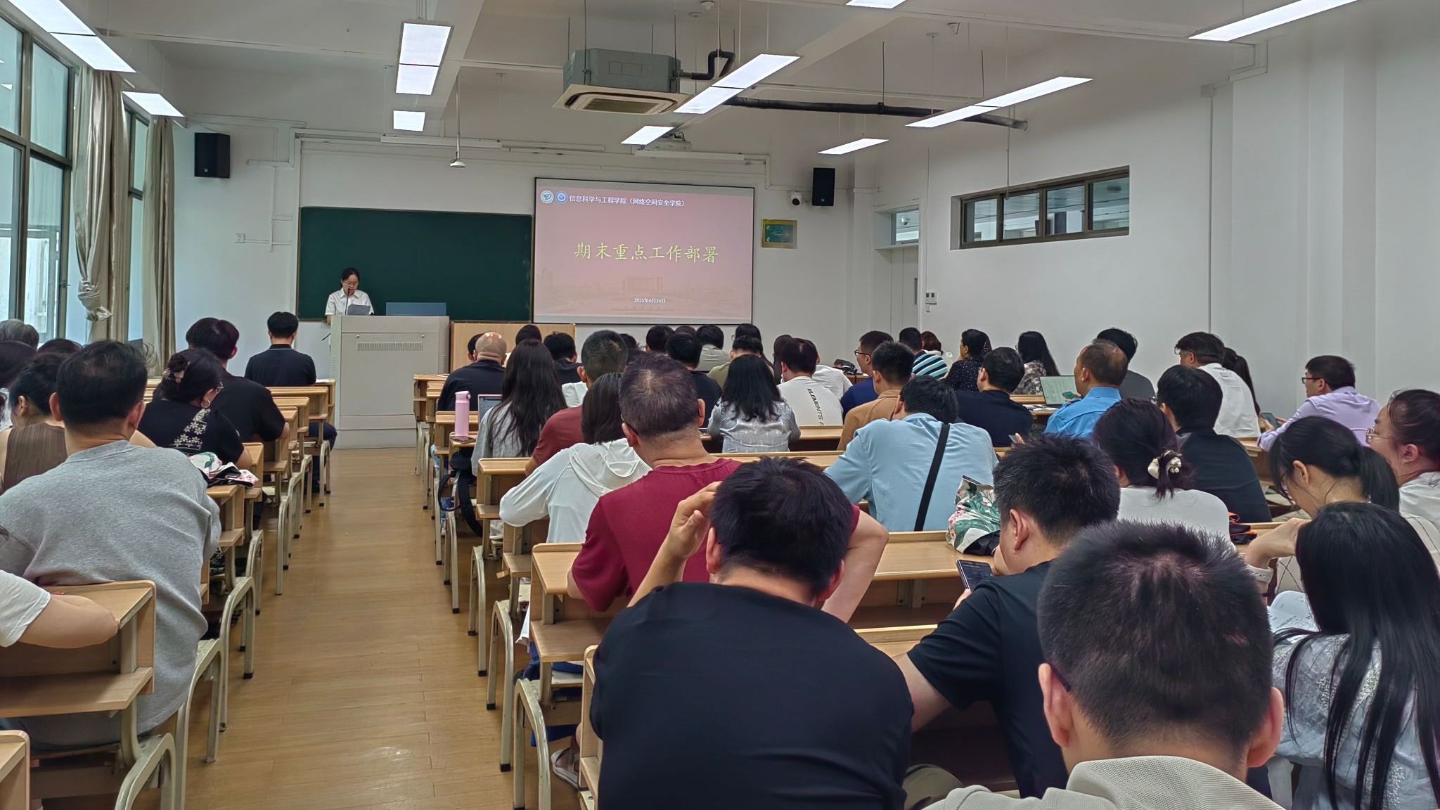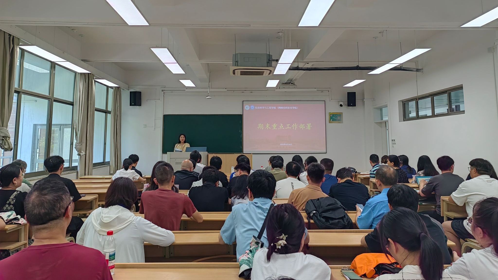 (网络空间安全学院)召开全体教职工大会暨竞聘专业技术二级岗位民主测评会,学院党政领导班子成员、全体教职工参加会议。会议由学院党委书记苏丽辉主持。