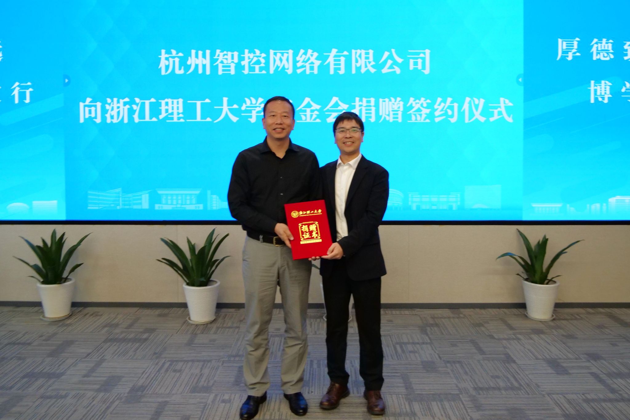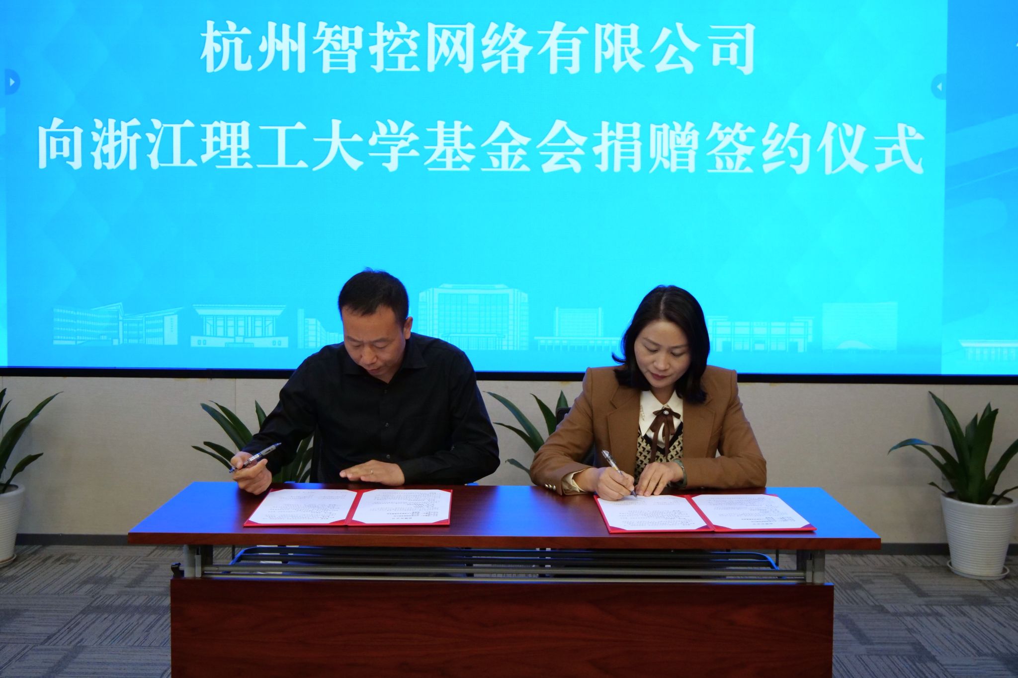 捐赠“智控网络教育基金”50万元,用于支持学院物联网技术与数据安全人才培养、科学研究等。罗旭与苏丽辉代表双方进行捐赠签约。
