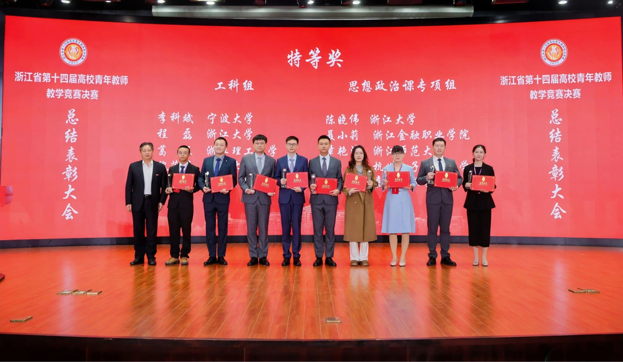 浙江省第十四届高校青年教师教学竞赛由省教育厅、省教育工会联合主办,宁波大学承办,是省内高校青年教师教学领域的最高级别赛事。全省共99所高校331名青年教师参加比赛,176名教师入围现场决赛,经过两天激烈角逐,最终产生特等奖31名,一等奖57名,二等奖88名。