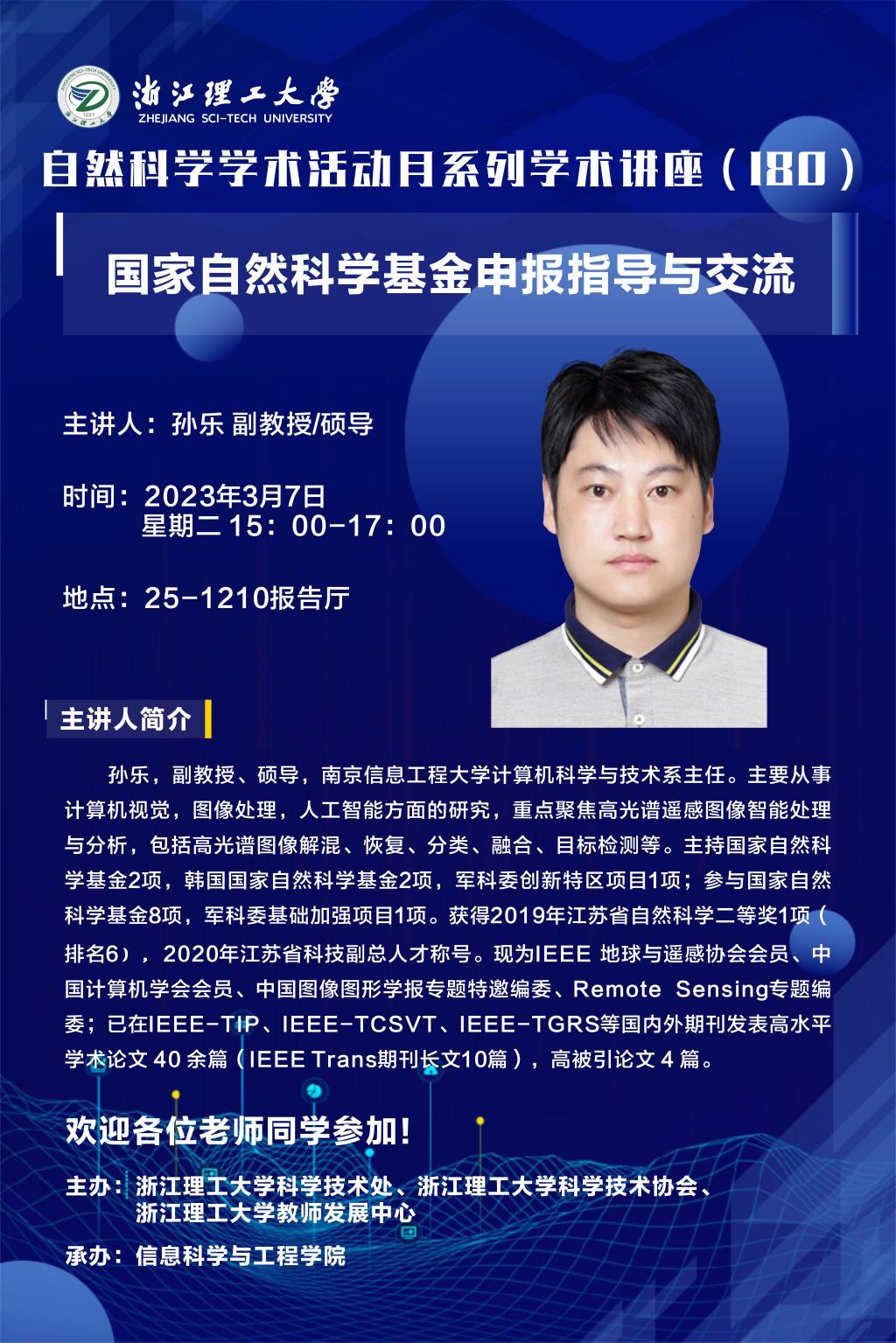 2023年3月7日,学院邀请了南京信息工程大学郑钰辉教授和孙乐副教授来色色啦 进行2023年度国家自然科学基金申报经验交流,会议由色色啦 副院长童基均主持。