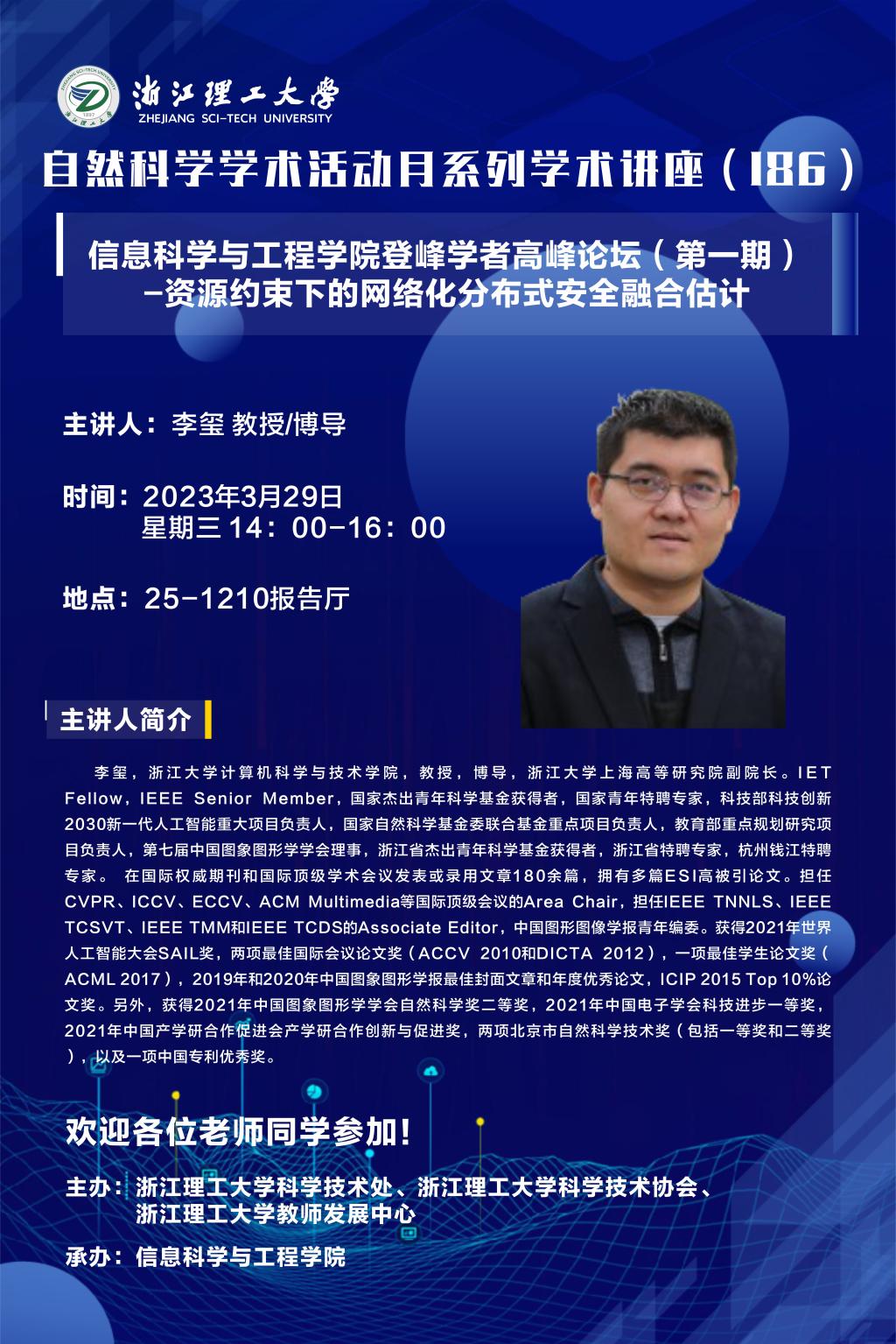 登峰学者高峰论坛,邀请全国信息领域的专家学者带来学科前沿讲座。首届论坛于3月29日开幕,论坛邀请了浙江大学李玺教授(国家杰青)、杭州电子科技大学俞俊教授(国家杰青)、浙江工业大学陈博教授(国青)、浙江工业大学俞立教授(国家杰青)。本次会议由色色啦