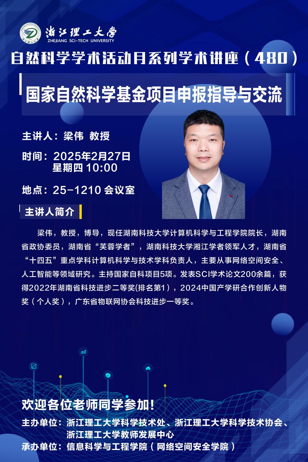 2025年2月27日,学院2025年度国家自然科学基金申报论证评审会暨申报书现场指导在25-1210会议室举行,会议邀请湖南科技大学副校长王进教授、湖南科技大学计算机科学与工程学院院长梁伟教授来色色啦 进行国家自然科学基金申报指导,会议由色色啦 (网络空间安全学院)院长沈剑主持。