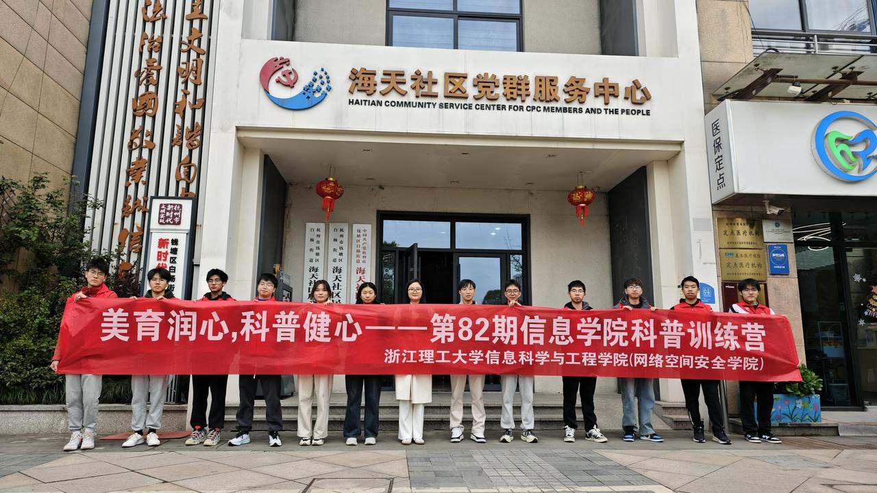 赴海天社区开展科普文艺活动,题为:共赴科技美育之约,大学生志愿者走进社区开展科普文艺活动。