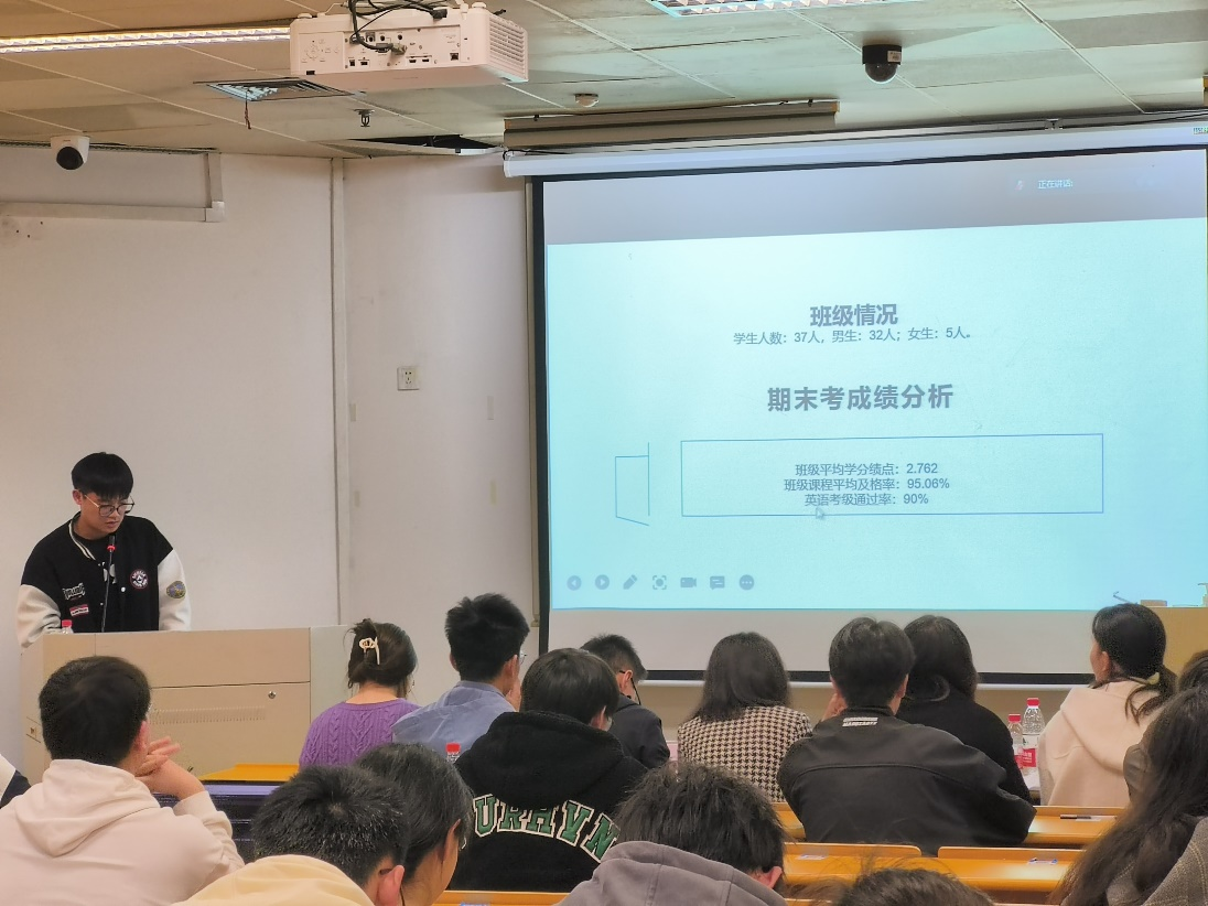 各班级围绕班级基本情况、学风建设举措、学风建设成果、班主任、班委在学风建设中的作用发挥等进行了陈述。各班结合实际均制定了相应的学风建设举措并取得了不错的成果,如开展班级四六级打卡计划,大一阶段四级通过率就达到了90%以上;班主任在班内开设自习室,使得班级成绩明显提升;开展科研信息分享交流会,班级同学100%参加学校科研项目;邀请学长学姐进行经验交流分享,帮助同学们提前做好学业规划等。