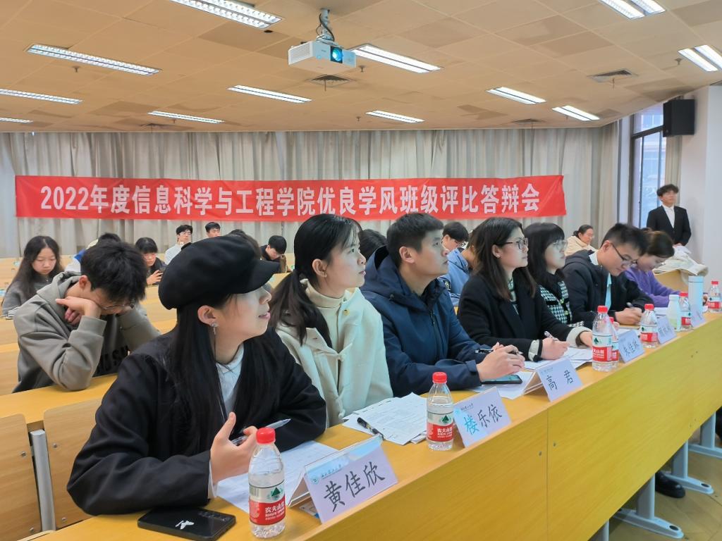 3月22日下午,信息科学与工程学院优良学风班评比答辩会在2N218举行,共有21个班级参与了本次答辩。学院学工办主任朱佳琳、21级电气类辅导员高君、22级电子类辅导员顾林彬、22级电气类辅导员楼乐依、20级21级电子类辅导员孙童、学生辅导员余灵婕以及学风主席黄佳欣出席活动并担任评委。另外,为加强学院学风建设,促进各班级之间的交流学习,学院各班级班长、团支书和学习委员也参加了本次答辩会。