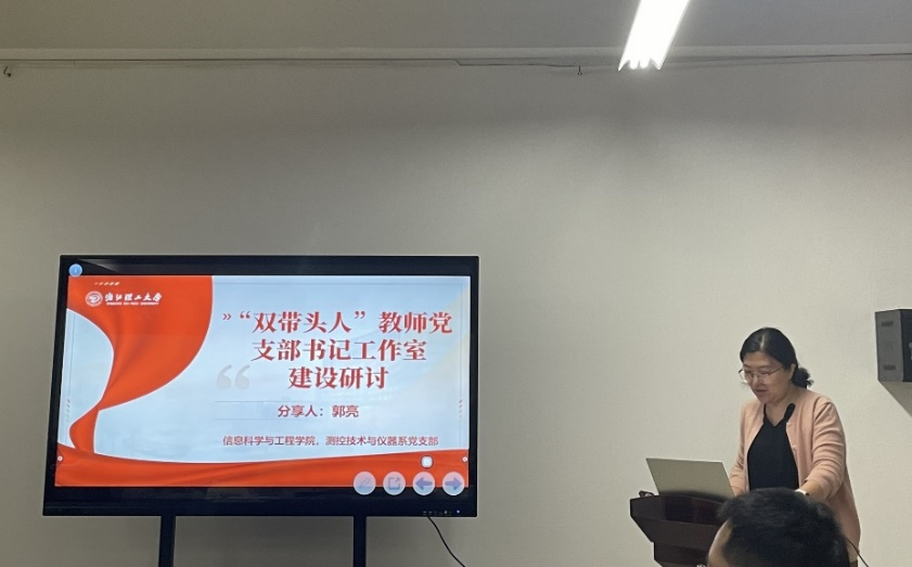 培训会邀请了学院原通信工程系“双带头人”教师党支部书记工作室负责人吴呈瑜和测控技术与仪器系“双带头人”教师党支部书记工作室负责人郭亮两位老师作专题报告。两位老师分别围绕党支部的标准化建设、党建与科研竞赛、学科建设、学生培养等方面的深度融合和主题教育开展情况进行了深入的经验分享,现场气氛热烈。