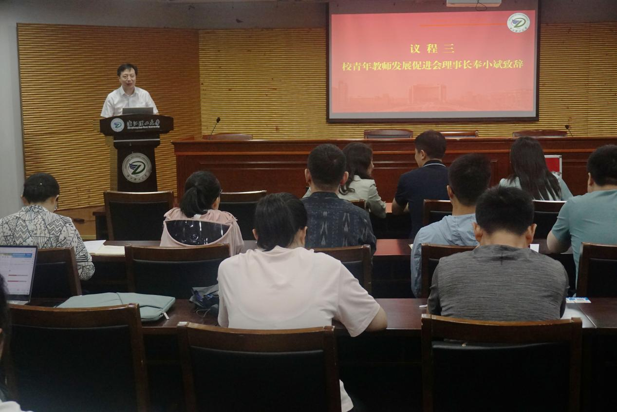 奉小斌致辞。他代表校青促会对学院青促会的成立表示祝贺,并感谢学院领导和老师们对校青促会工作的支持。他希望学院青促会可以履行四个方面的职责:一是交流平台,通过分享教育教学助力青年教师快速成长;二是做好学校、学院与青年教师的桥梁,密切关注教学、科研、生活等各方面,倾听教师心声;三是丰富业余生活,组织各种活动增进教师们的交流,实现教学、科研上的互帮互助;四是助力青年教师成长成才,定期开展培训活动提升能力,将使命感和责任感转化为教书育人的力量。