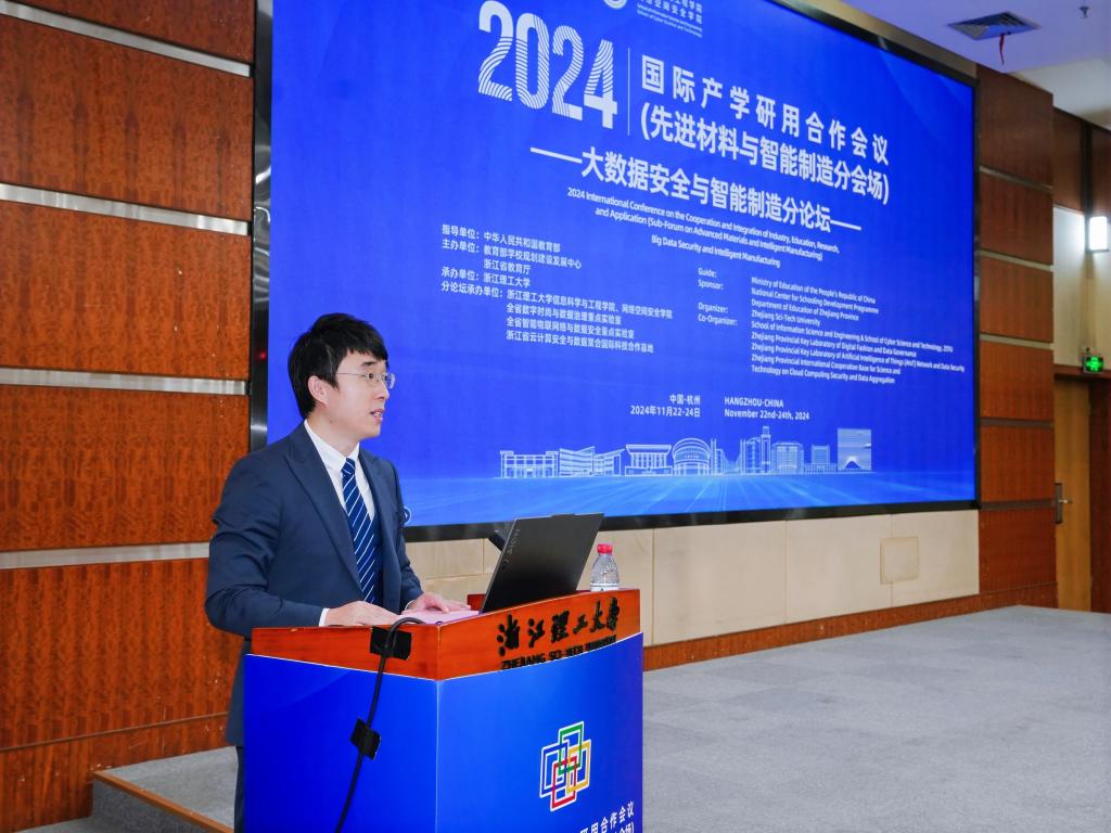 2024年11月23日-24日,2024年国际产学研用合作会议先进材料与智能制造分会场于杭州举办。本次会议由教育部指导,教育部学校规划建设发展中心、浙江省教育厅主办,浙江理工大学承办。本次会议包括开幕式及大数据安全与智能制造、先进纺织技术、先进材料等三个平行分论坛。其中,“大数据安全与智能制造”分论坛由信息科学与工程学院(网络空间安全学院)、全省数字时尚与数据治理重点实验室、全省智能物联网络与数据安全重点实验室、浙江省云计算安全与数据聚合国际科技合作基地承办。学院院长沈剑以及学院师生出席分论坛。