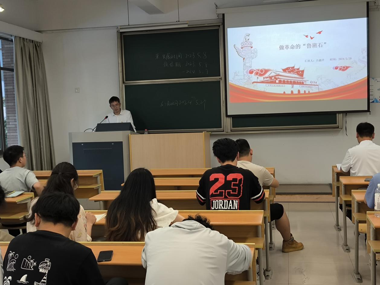 纪检委员吕鑫洋分享了题为“做革命的‘鲁班石’“的红色故事,讲述了革命年间围绕无线电通信发生的种种故事,其中承载着的忠诚与担当,红军战士艰苦奋斗、不畏牺牲的精神更是历久弥新,激励着现在的人们不断前进。