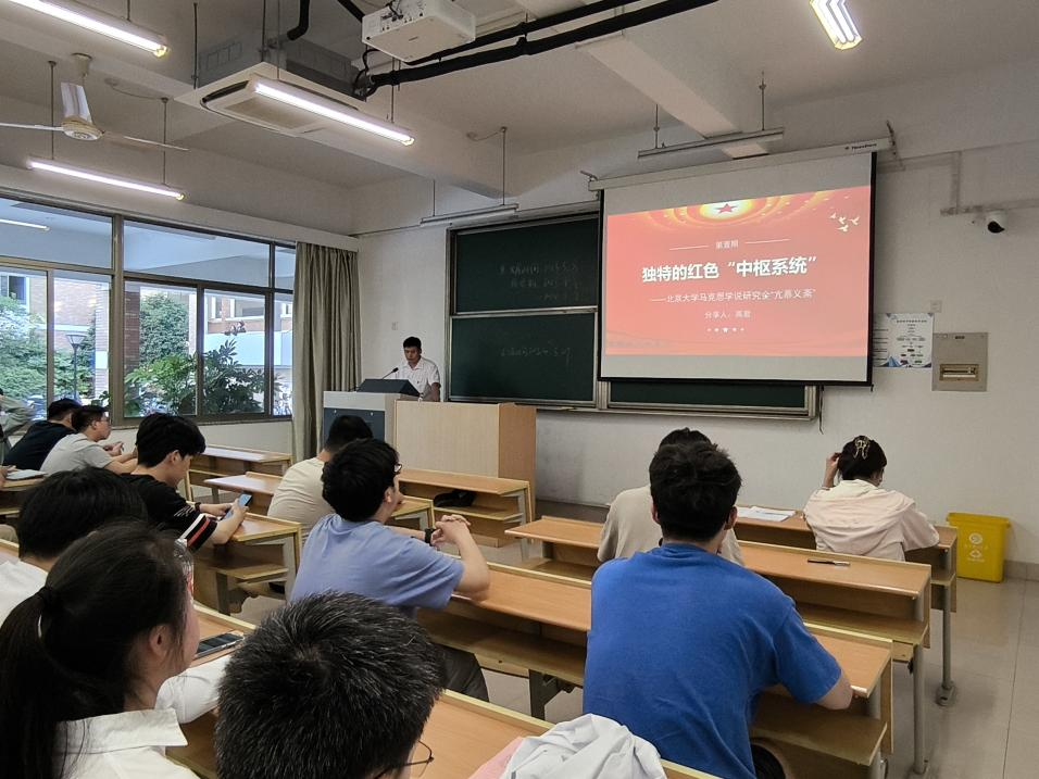 支部书记高君发挥模范带头作用,率先分享了题为 “独特的红色‘中枢系统’”——北京大学马克思学说研究会亢慕义斋的红色故事,详细讲述了李大钊等人秘密成立马克思学说研究会,开始研究与传播马克思主义的事迹。