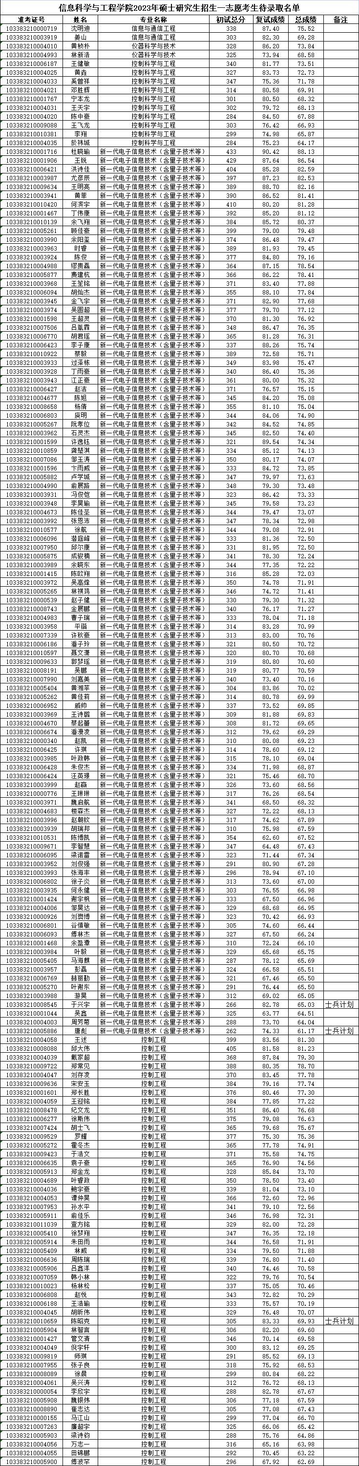 信息科学与工程学院2023年硕士研究生招生一志愿考生待录取名单