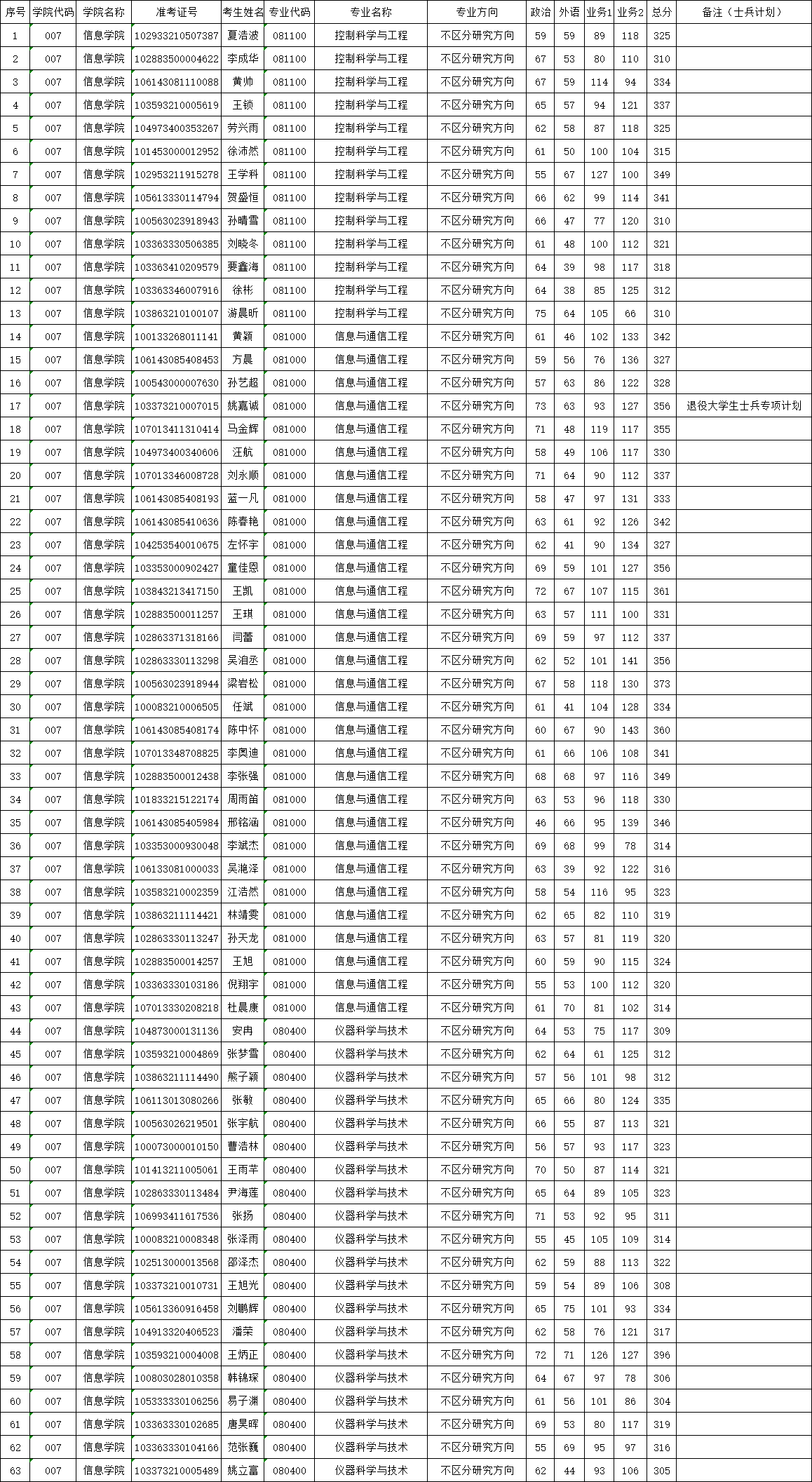 信息科学与工程学院参加研究生招生复试考生名单(第一轮调剂考生)