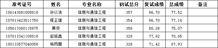 信息科学与工程学院2023年硕士研究生招生第二批信息通信与工程调剂考生拟录取名单