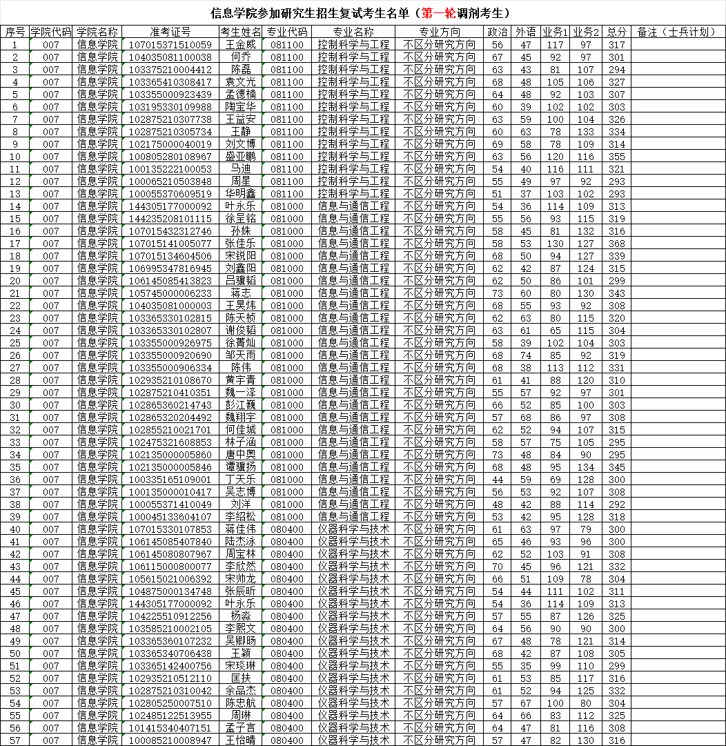 信息科学与工程学院(网络空间安全学院)参加2025年研究生招生复试考生名单(第一轮调剂考生)
