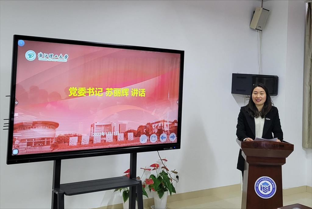 最后,学院党委书记苏丽辉致闭幕词。她代表学院党委向大会的圆满召开表示热烈祝贺,向全体代表和工作人员的辛勤工作表示衷心的感谢,并对学院工会在办学治院过程中和维护团结大局中发挥的重要作用给予充分肯定。她强调,本次会议是在深入学习贯彻党的二十大精神、推进学院事业迈向新征程的关键时期召开的一次重要会议,是一次明确目标、统一思想的大会,也是一次满怀豪情、蓄势待发的大会,对学院实现跨越式发展具有重要意义。
