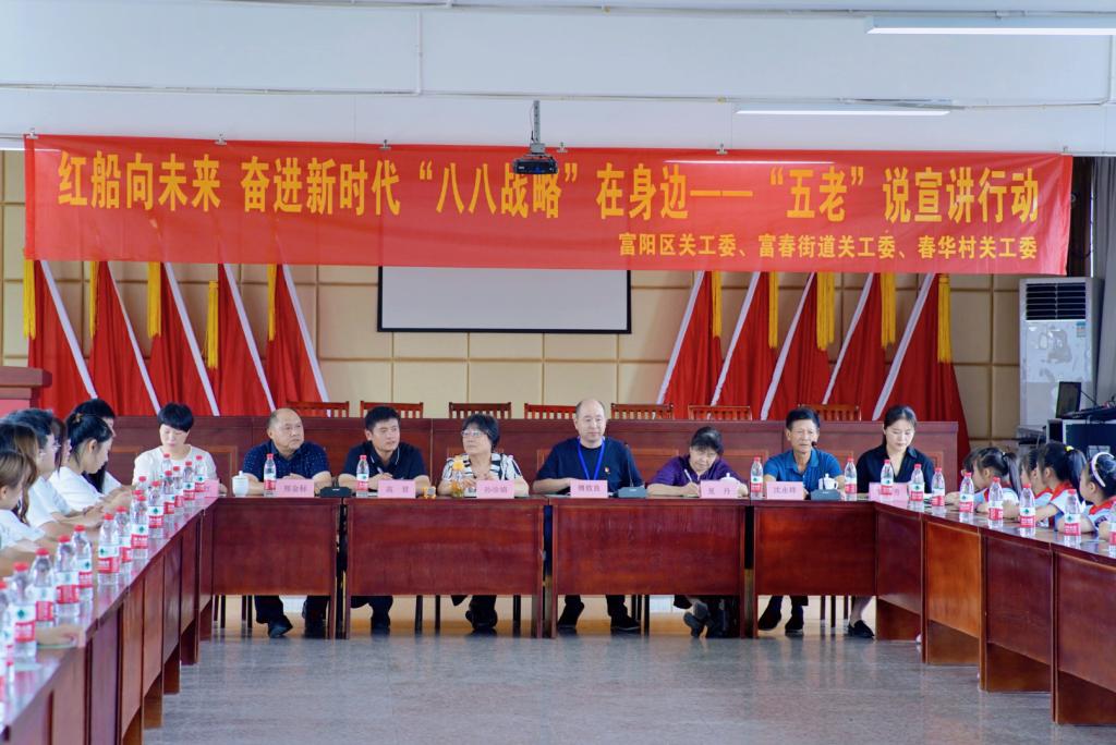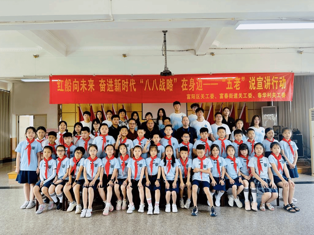 “春华循迹悟振兴”暑期社会实践团学生与杭州市文海实验学校中学生,以及富春第八小学小学生共同参加在富阳区富春街道春华村举办的“红船向未来,奋进新时代‘八八战略’在身边——‘五老’说”宣讲活动,通过循迹溯源、讲述红色故事,引导青少年学生深入学习贯彻习近平新时代中国特色社会主义思想,感悟我省深入实施“八八战略”推动高质量发展,奋力谱写中国式现代化浙江篇章的精神,进一步增强奋斗精神与爱国意识。受邀进行宣讲的是富阳区富春街道春华村老书记郑金标、全国种粮大户沈永祥,活动由春华村党委书记傅致良主持,色色啦