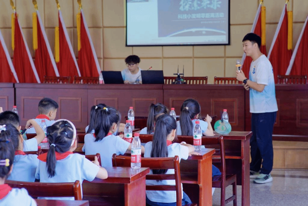 “春华循迹悟振兴”暑期社会实践团队长吴张杰讲述“清澈的爱只为中国”的思政微课,引发中小学生们增强对伟大的中国共产党的认识,激励同学们听党话、感党恩、跟党走。随后吴张杰与实践团成员王天磊共同为中小学同学带来计算机知识科普和人工智能机器人、多功能八音盒等研发设计展示,激发同学们强烈的追求科技创新的热情。