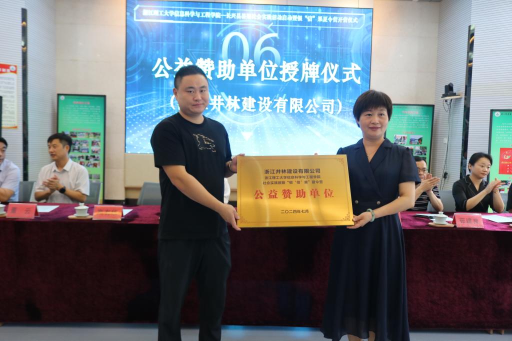 苏丽辉代表学院向浙江井林建设有限公司授予“公益赞助单位”称号。她在讲话中强调,双方要以此次活动为契机,加强实践育人,实现品牌共建;整合校地资源,实现人才共育;注重成果产出,实现同频共振。以新颖的科普互动模式,以科学素养现状调查研究,构建多场域、多维度的科普教育格局,在“活化资源”中为学生培根铸魂启智增慧,在“文化浸润”中为学生增长科学素养。