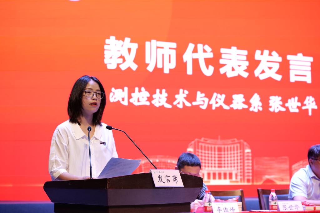 教师代表张世华结合自身班主任经历,对同学们提出了真挚的建议,她叮嘱同学们要珍惜大学时光,勤奋学习,利用好大学这个平台,促进自身的全方位发展,同时尽早明确自己的未来发展目标,以饱满的热情和昂扬的斗志,谱写属于自己的精彩人生篇章。